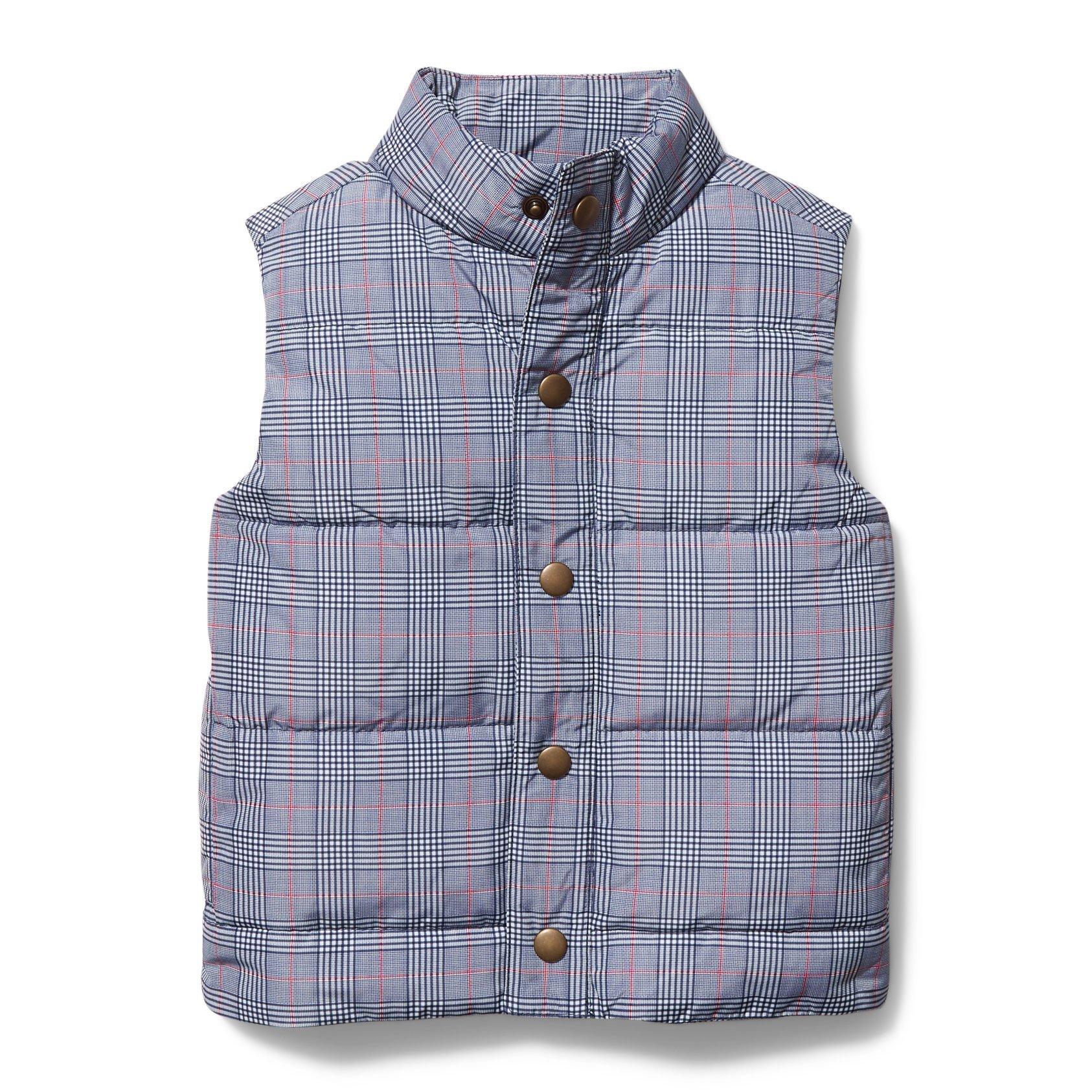 - productDetails1: Our plaid vest is an outfit game-changer. With easy antique brass snap buttons and front pockets for the little things, it'll keep him cozy year round.