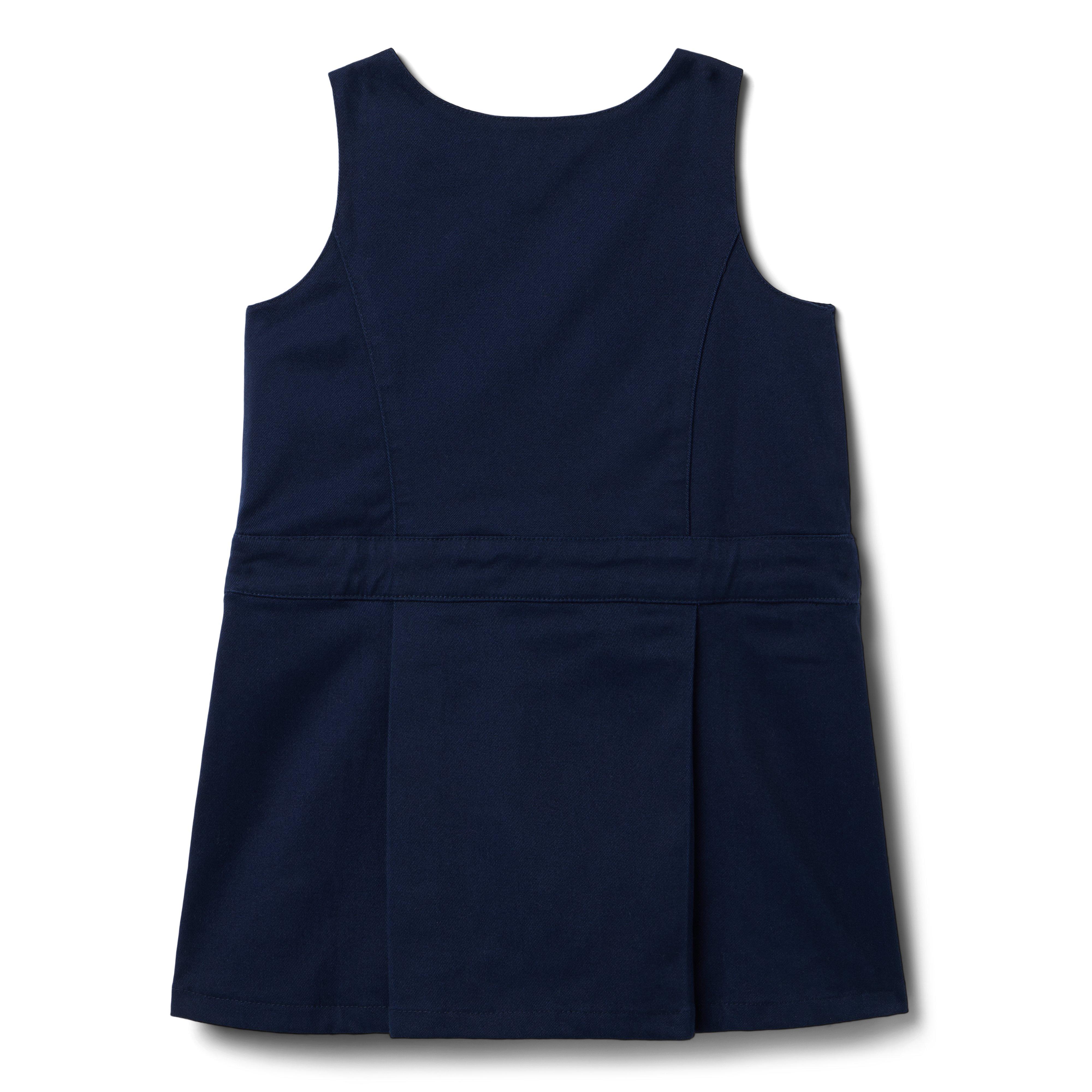 - productDetails1: A style for the books? This school-ready drop waist jumper in soft stretch twill. Featuring crisp pleating and button details too.