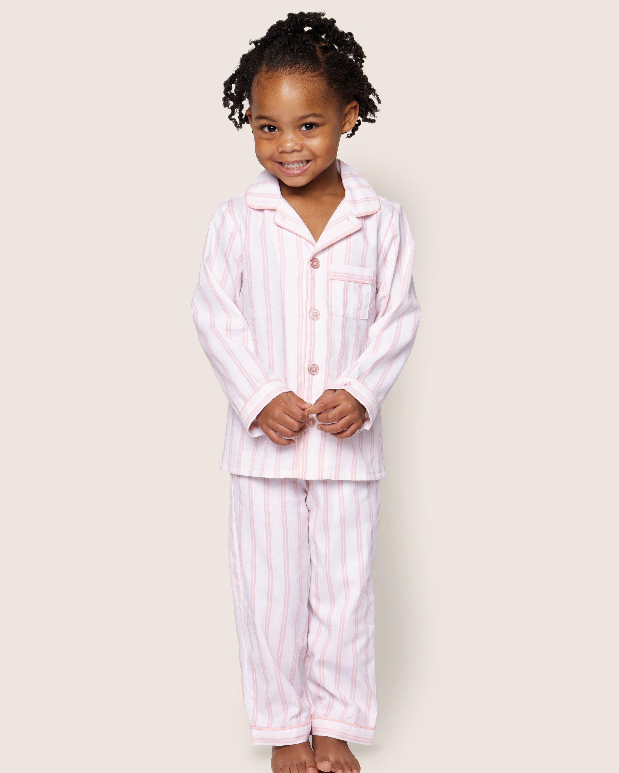 Petite Plume Kid's Twill Pajama Set in Pink Stripes